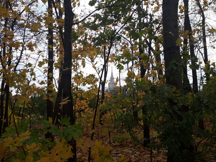 Перейдя по подземному переходу, я попал в новый мир. Если граница МКАДа была исключительно экономическо-социальной, то граница территории МГУ ощущалась всеми фибрами души. Попав во владения научной твердыни, ты оказываешься во власти природы и спокойствия. Мичуринский проспект, шумевший ранее как мощный водопад, в одночасье превратился в тихую пустынную просёлочную улочку, лишь по воле случая оказавшуюся заасфальтированной. Старинные деревья, произрастающие по обеим сторонам дороги, неспешно бросают за столь же старый забор свою пожелтевшую листву. Тишина этого места настоятельно требовала, чтобы её послушали - я снял наушники и отправил в карман на подзарядку. Мимо проехала пара "этоэлектробусов", заставив меня невольно улыбнуться.