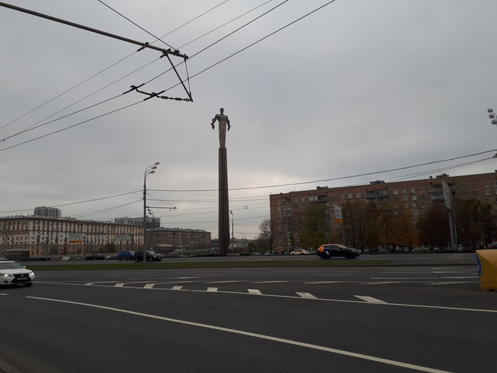 Памятник в честь первого человека в космосе серебряной доминантой возвышается над всей площадью. Немного с краю приютился величественный дворец советской, а теперь и российской науки. Здание президиума РАН с модернистской "короной", которая снизу (да и со всех остальных сторон) выглядит очень спорно. В одну сторону от площади уходит в область широчайший Ленинский проспект, в другую - стартует проспект 60-летия Октября, который буквально через один перекрёсток, вдруг, станет величественной Профсоюзной улицей.