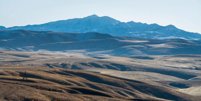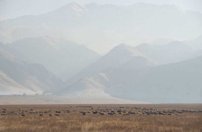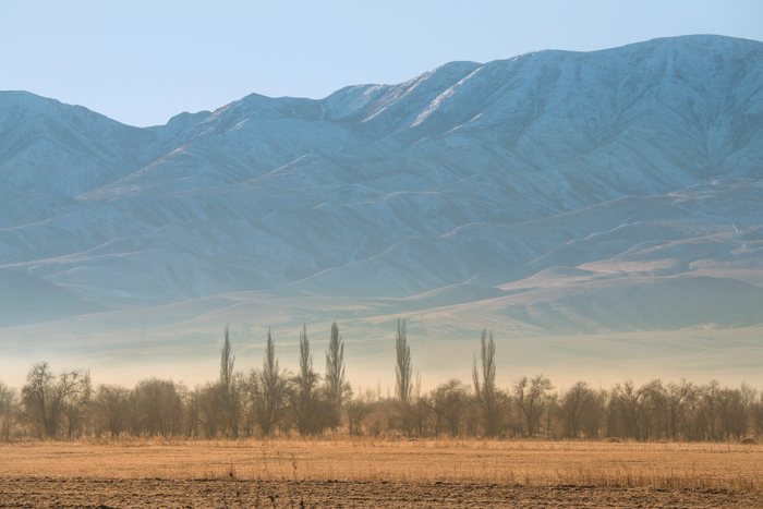 Дорога с севера на юг, через степи. Постепенно поднимаемся в горы. Дороги в этой части Казахстана отвратительного качества! Ямы, поперечные глубокие канавы, переметы и гололед. Средняя скорость движения (не забывайте, у нас ведь еще и прицеп) – около 40 км/ч.