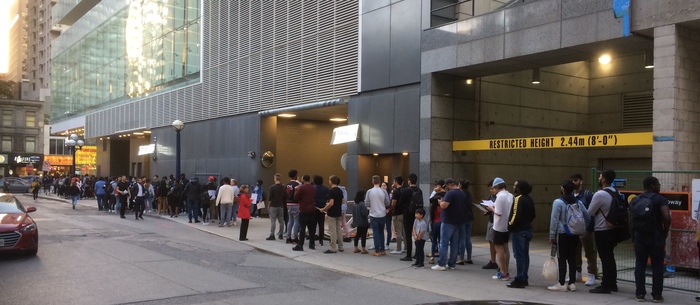 К слову об очередях: как ни странно, очереди в Торонто — явление распространённое, потому что периодически происходят какие-нибудь мероприятия, и народ выстраивается в длиннющую очередь. Здесь не так давно один ненормальный заявлялся в учебные учреждения с ведром человеческого кала, и поливал содержимым ведра студентов. Потом его поймали, и выстроилась огромная очередь послушать, что будет на судебном заседании — а репортёр сказал что-то вроде “наблюдаем очередной пример того, как Торонто любит очереди”, и ведь действительно. В Москве при открытии первого МакДоналдса была огроменная очередь, нетрудно нагуглить фотографии, удивляет другое — в Торонто недавно пришла очередная американская сеть быстрого питания, продающая крылышки, в России о ней может и не слышно особо, называется Чик-Филе (Chick-fil-A), так очередь была огромнейшая. Я думал, там бесплатно что-то раздают, а нет — просто людям так нравится Чик-Филе, что они готовы были дожидаться покупки крылышек в гигантской в очереди. И потом ещё с месяц примерно там длиннейшая очередь была по вечерам (я там мимо хожу, поэтому всё время удивлялся).
