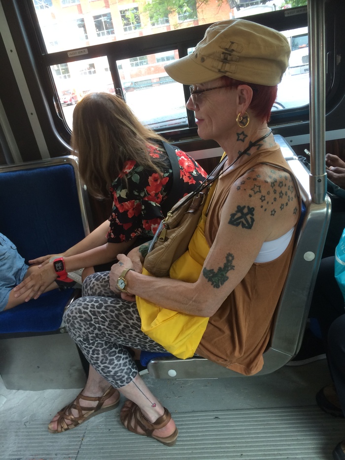 В России распространилась мода на татуировки, что само по себе меня до сих пор удивляет. Диапазон возраста для татуировок в Канаде шире российского, так что попадаются весьма возрастные люди с татуировками. Все шутки про будущих бабушек с тату уже, пожалуй, давно реальность для Торонто. Кстати, иногда татуировки свежие (или подновлённые).