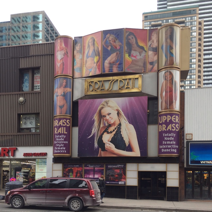 По приезду удивляло, что в даунтауне несколько стрип-клубов с крупными вывесками (особенно смешно пояснение “полостью раздетые женщины”). Но сейчас уже скорее привычно. Не знаю, пользуются ли они популярностью, но, наверное, пользуются, раз продолжают существовать. Честно говоря, не уверен, на какой контингент рассчитаны эти клубы, ни в одном дискурсе они ни разу не фигурировали. С другой стороны, в одном из зданий, где я работал охранником, жили мадемуазели, сильно напоминавшие сотрудниц такого клуба, и они очень сильно отличались от “обычных девушек”, в основном нюансами общения и манерой одеваться (они и для обычной прогулки одевались так, будто улица — это предбанник стрип-клуба). Они, кстати, говорили на чистом английском, без иностранного акцента, и судя по обрывкам разговоров, я так понял, их родители переехали в Канаду откуда-то из Европы.