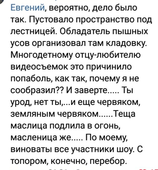 — Я не глухой ставлю, а с зазором. Вы не толстая и не уродина, просто вы и ваш супруг постоянно гуляете в нижнем белье…