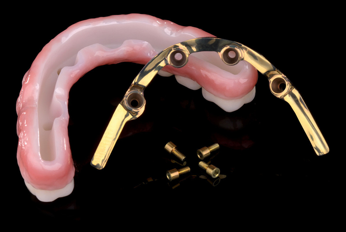 Именно по этой причине тотальные протезы на имплантатах из диоксида циркония армируют внутри титановой балкой — чтобы не рассыпались, как печенье.