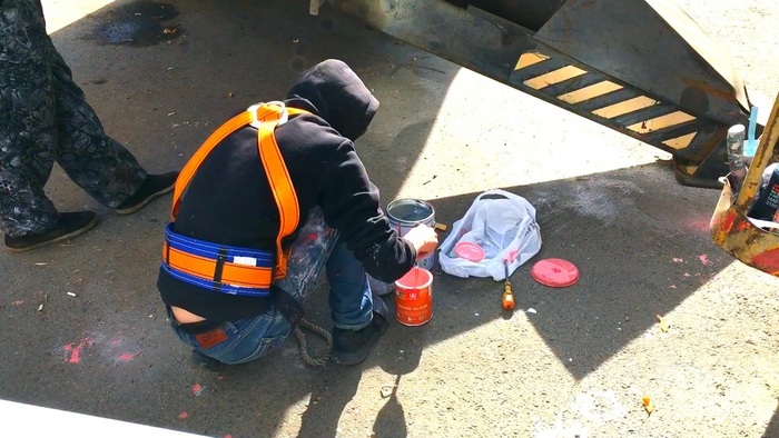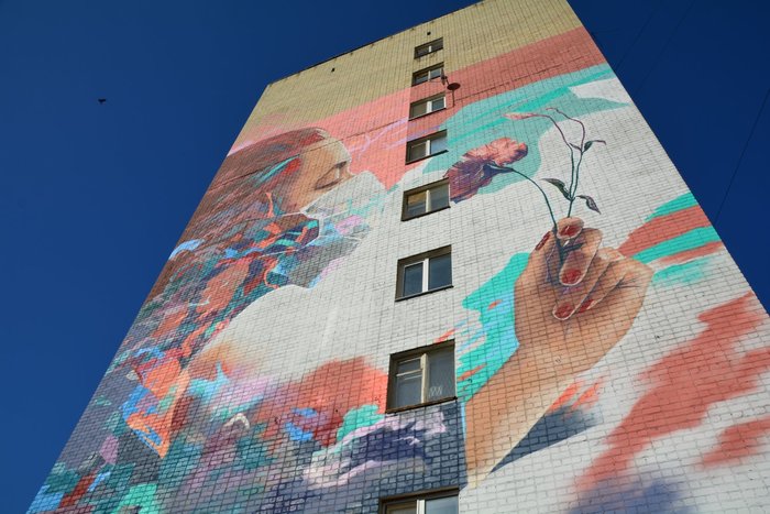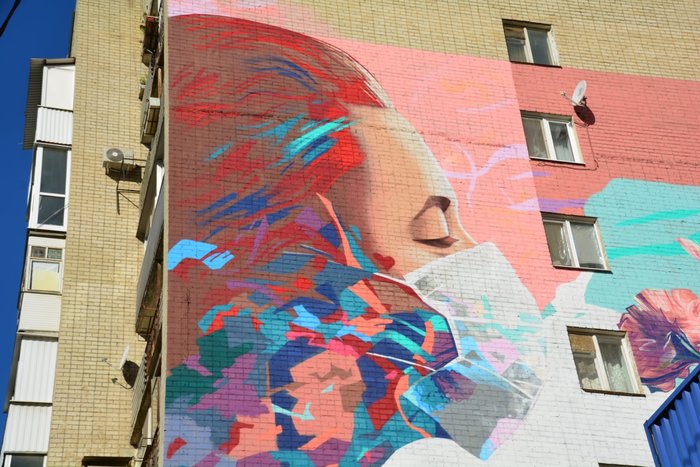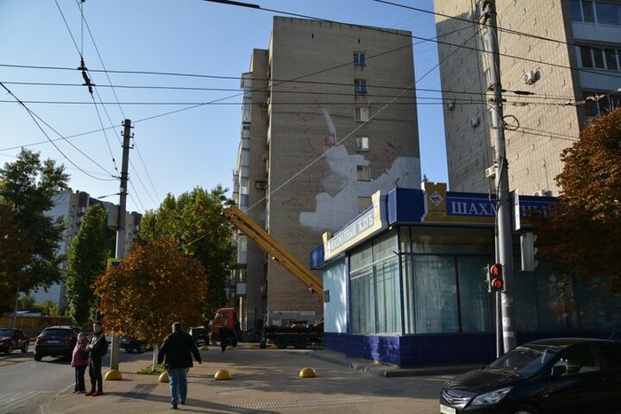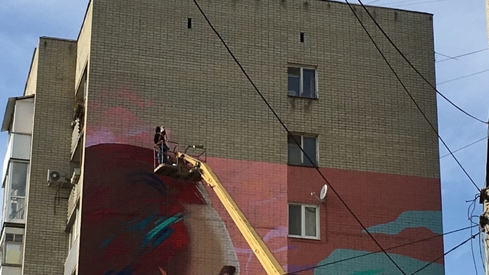 Подготовка началась еще в конце сентября. На работу у Быкова ушла неделя. Он ежедневно рисовал граффити, пользуясь автовышкой. Стену дома № 72/82 по улице Советской чиновники согласовали в качестве полотна.