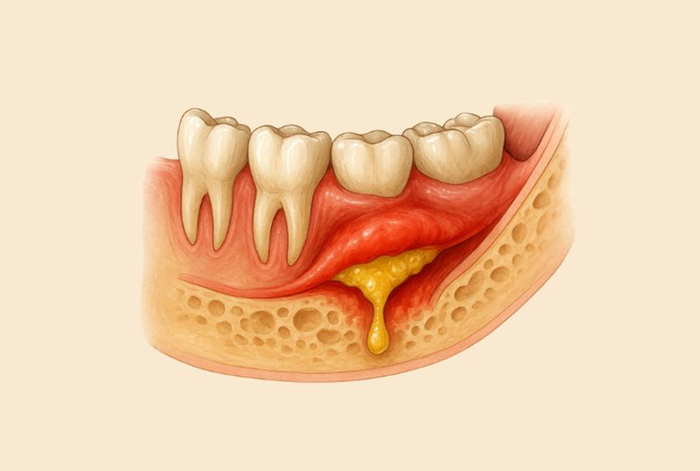По сути, это самый что ни на есть ограниченный остеомиелит челюсти, то есть гнойно-некротическое воспаление кости лунки. Такой пациент ходит к тебе где-то недели 3-4. Ты ему это периодически чистишь, моешь, кладешь повязки.