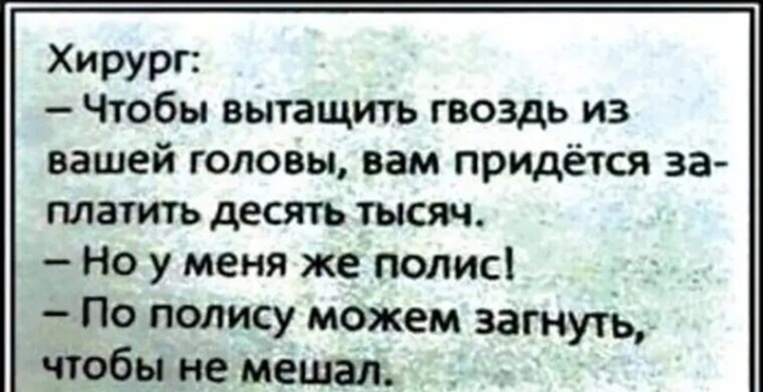 -Ну, по полису ОМС мы вам можем только загнуть!