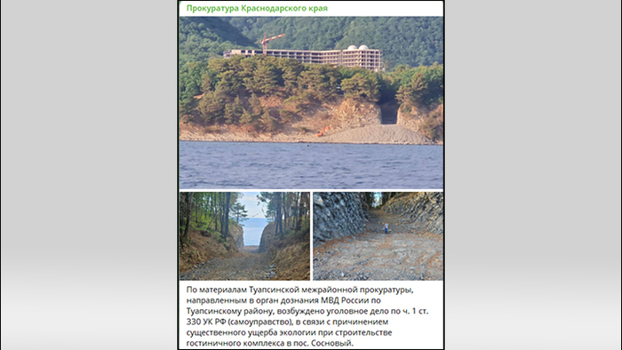 И как-то так совпало, что тогда же по итогам проверки Росприроднадзора было возбуждено уголовное дело по статье "Самоуправство" за нарушения при строительстве гостиницы на побережье Чёрного моря под Туапсе — в пос. Сосновка. Занималась созданием комплекса фирма "Сипайн Резорт", учреждённая сыном Шахлара 27-летним Серханом Новрузовым (в 2023-м, впрочем, юрлицо сменило учредителя, им стал приближённый семейства и товарищ Новрузова-младшего Тархан Гасанзаде).