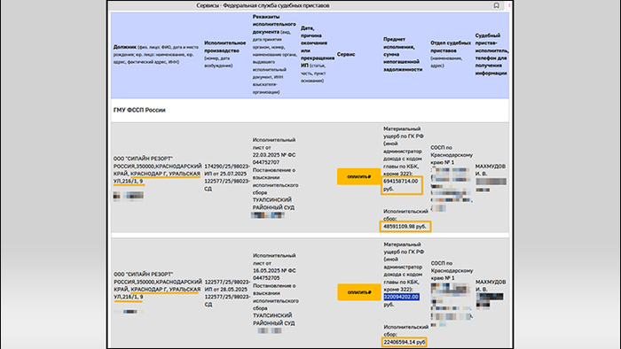 Позже сообщалось, что требования надзора удовлетворены, но мы выяснили, что ущерб, причинённый природе, так и не возмещён. О чём наглядно говорят два исполнительных листа ФССП на общую сумму 1,014 млрд рублей: