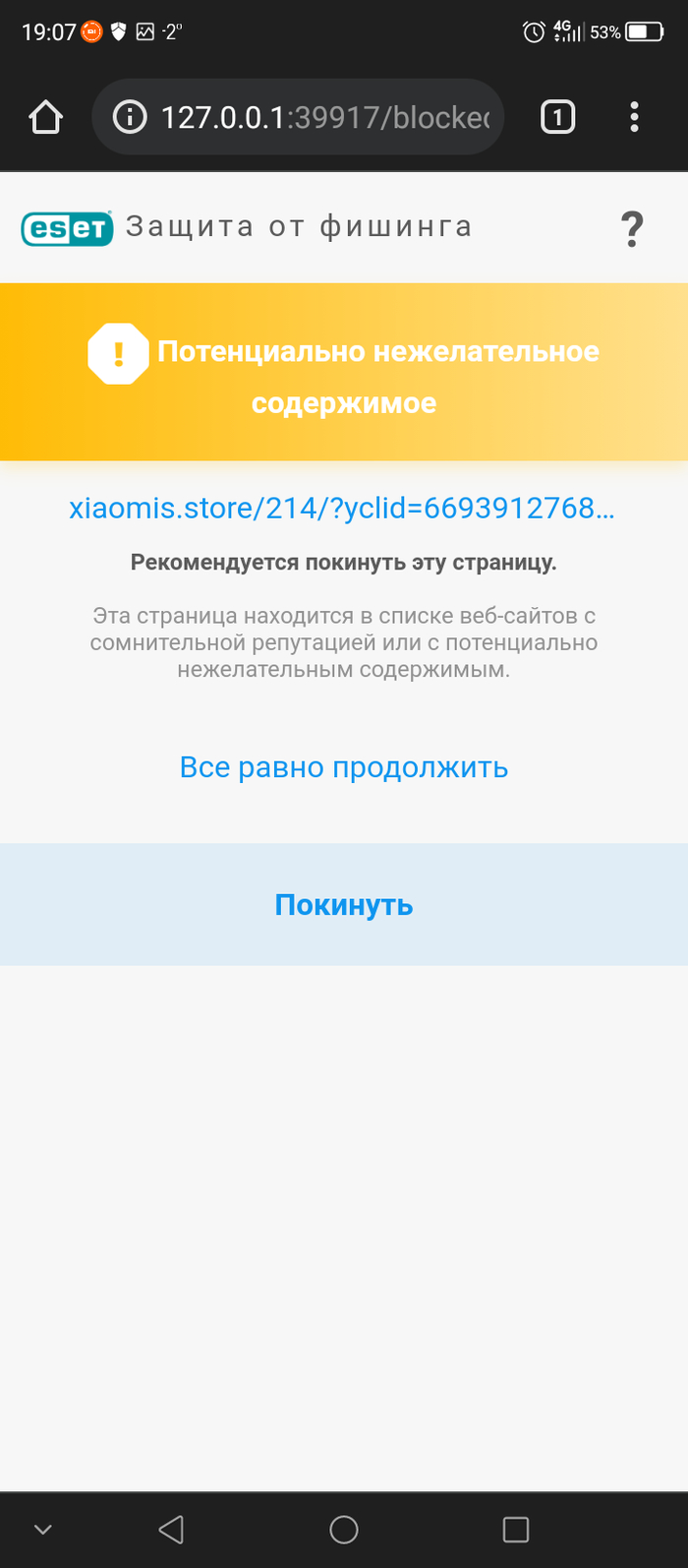 Вот что выдал антивирус при переходе на ссылку: