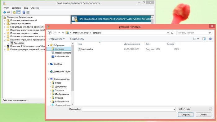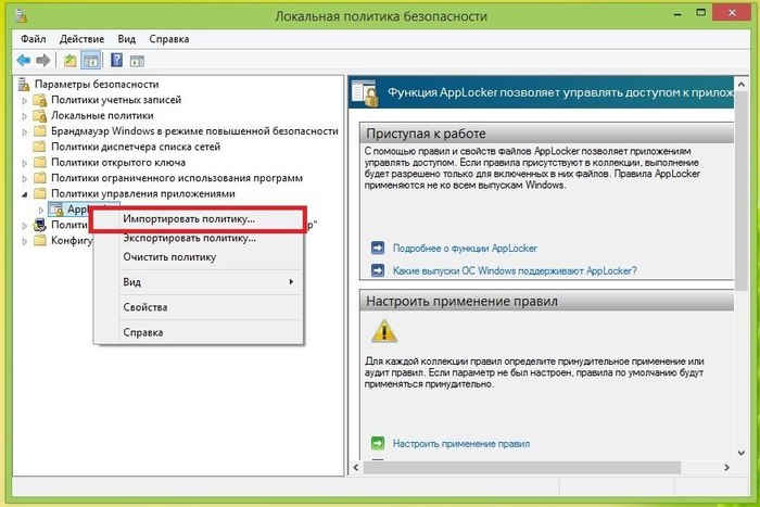 5)Нажимай правой кнопкой на AppLocker и на "Импортировать политику"