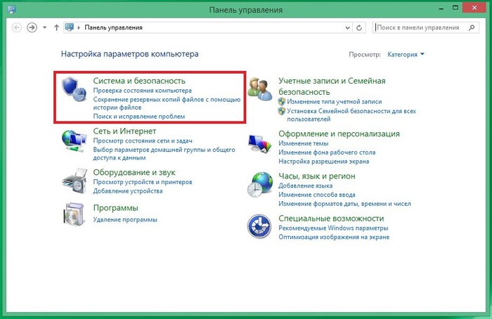 1)Открываем панель управления, там нажимаем на "Система и безопасность"
