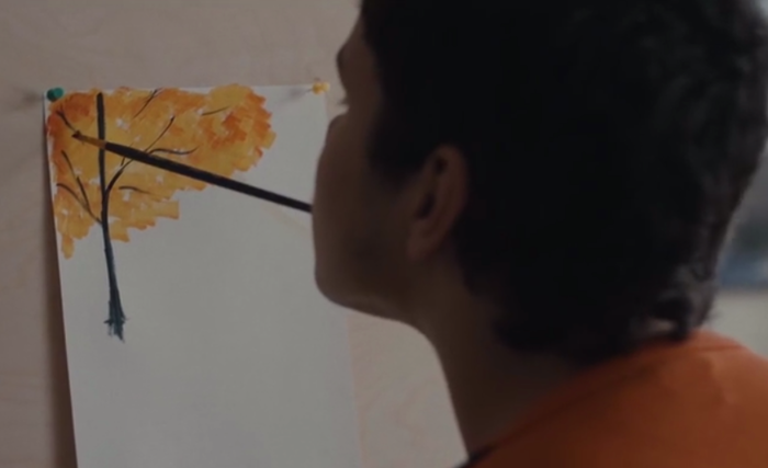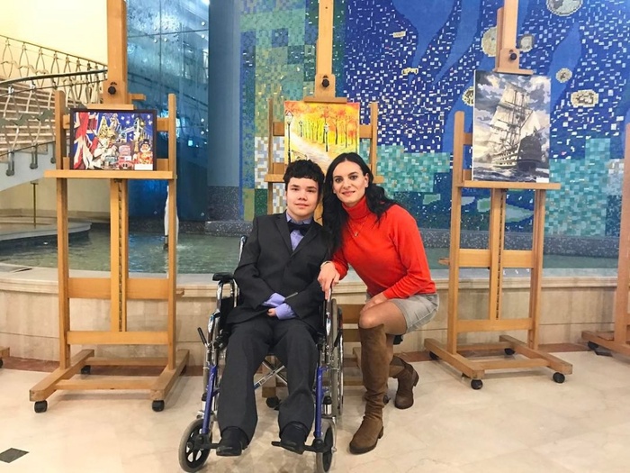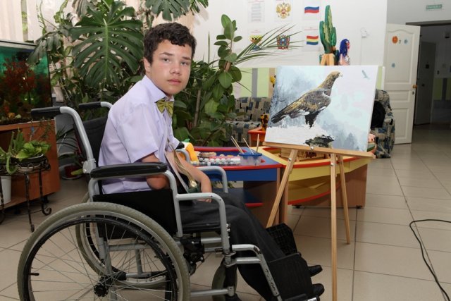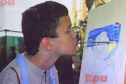 Он страдает серьезным заболеванием - артрогрипозом. Эта болезнь влияет на конечности, деформирует руки и ноги. Однако трудности не стали преградой для 14-летнего Сергея, который всё равно занимается своим любимым делом - он пишет картины, держа кисть в зубах.