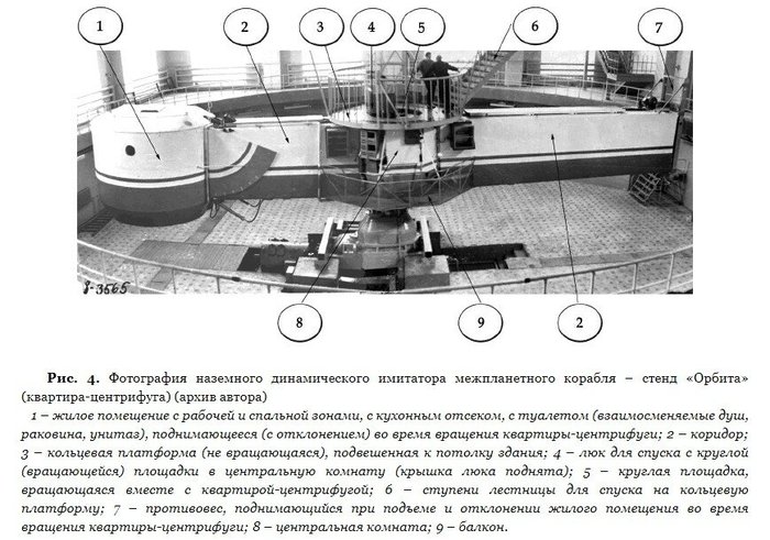 Далее стартовал более грандиозный эксперимент - «Орбита», в ходе которого на центрифуге с плечом длиной 20 м был смонтирован целый жилой отсек, рассчитанный на двух человек, которым предстояло провести там до 35 суток.