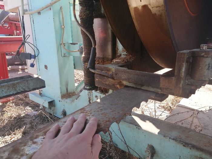 Для понимания размеров, на этой ленточной пиле стоит термос емкостью 1 литр.