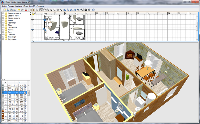 Для визуализации наших "хотелок" я воспользовался простой и быстрой в освоении бесплатной программой SweetHome3D. Подобных программ весьма много, но я остановился на этой, она показалась мне интуитивно понятной, и можно было быстро переключиться с процесса на содержание.