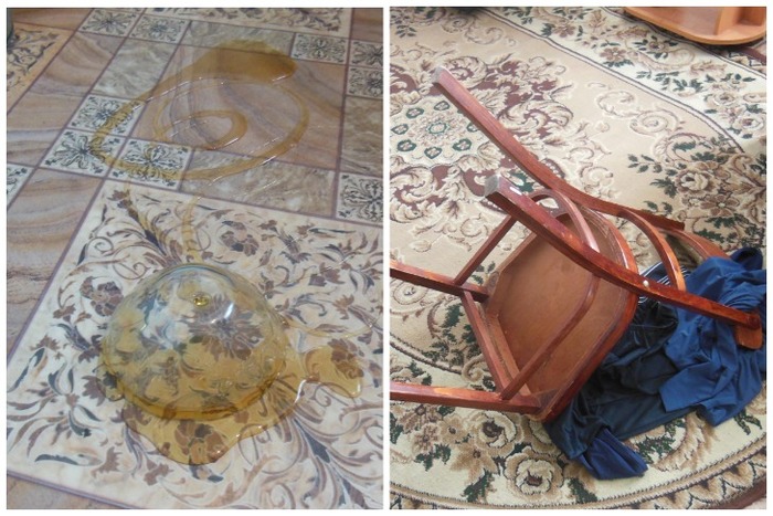 Мед вылился необычным узором, а мебель падала так, словно гравитация на время переставала существовать. Фото предоставлено Виктором Фефеловым.