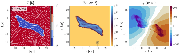 Численные симуляции демонстрируют, что протяжённые диски нейтрального водорода (HI) формируются в результате непрерывного охлаждения горячего газа из коронального гало (CGM). Охлаждение происходит на радиусе циркуляризации, приблизительно равном ≈ 0.1 rvir, что соответствует теоретическим предсказаниям.