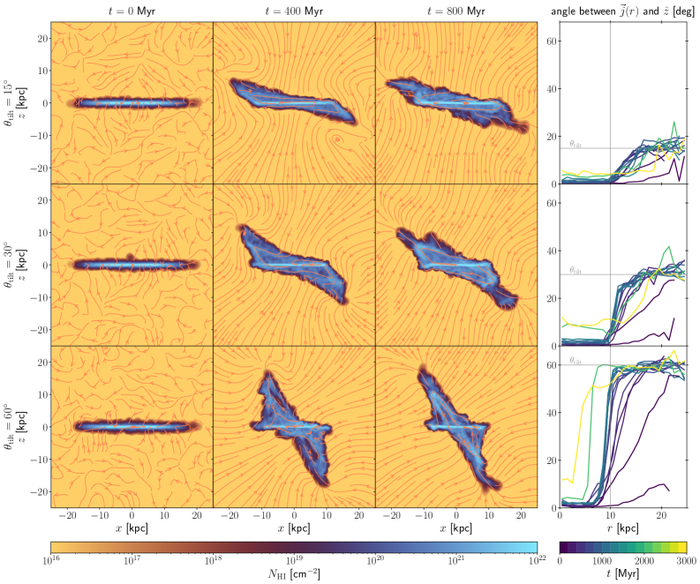 Новые симуляции показывают, как аккреция горячего газа из межгалактической среды может объяснить искажения и расширение дисков спиральных галактик.