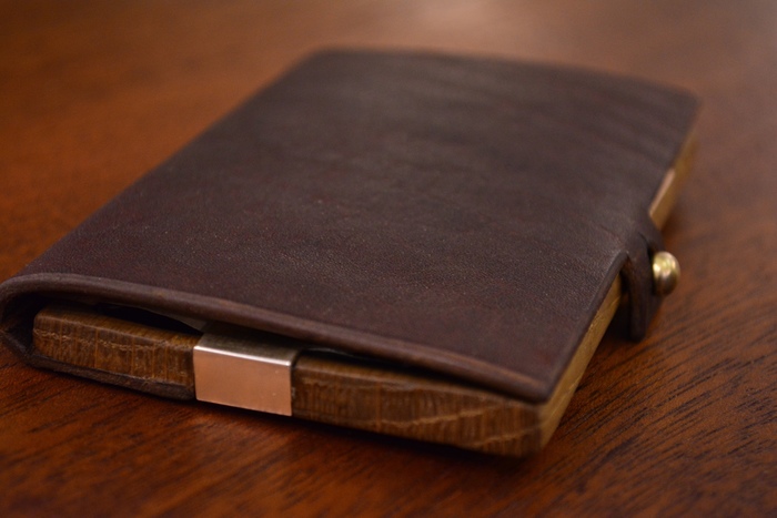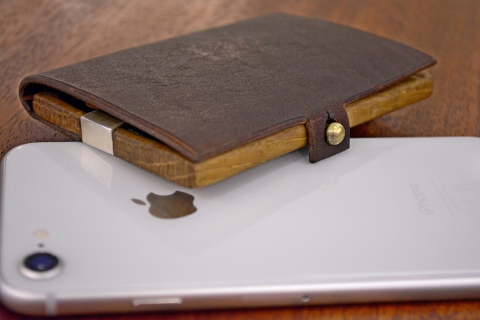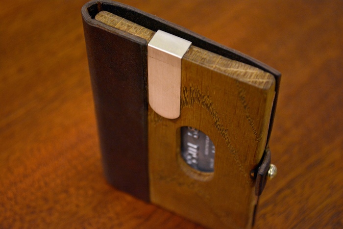 Вмонтировал кобурную кнопку и замутил отвертие, чтобы доставать карты не открывая кошелька.