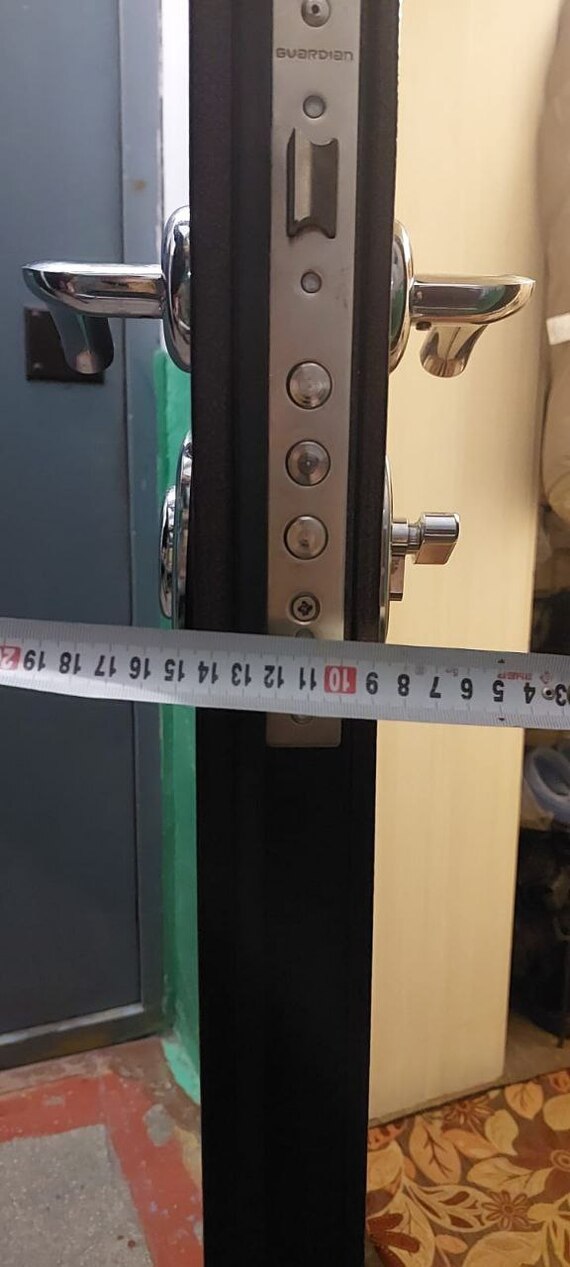 В субботний день отправился в ближайший хозмаг с старой личинкой замка. Хоть ассортимент там был приличный, экземпляра по нашим размерам не оказалось. Подобрали наиболее близкое.