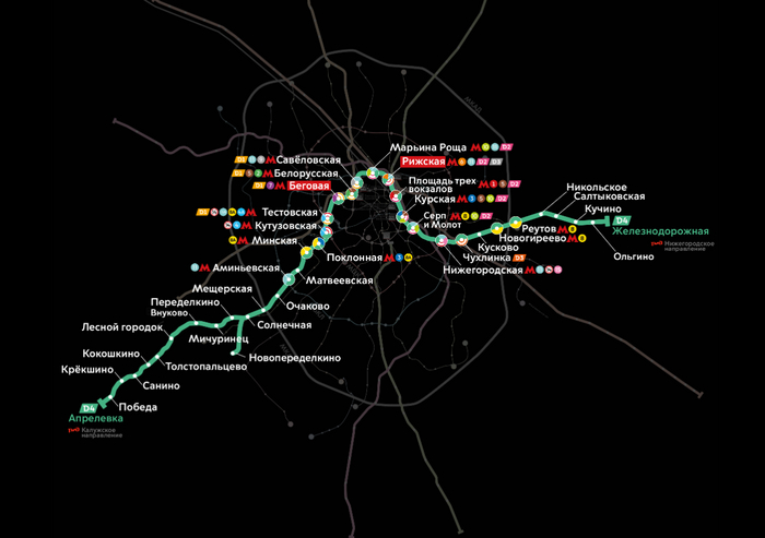 Затем с 2019 начали запускать городские электрички на радиальных железнодорожных направлениях московские центральные диаметры, которые начинаются за пределами Москвы в городах спутниках и прошивают столицу насквозь: