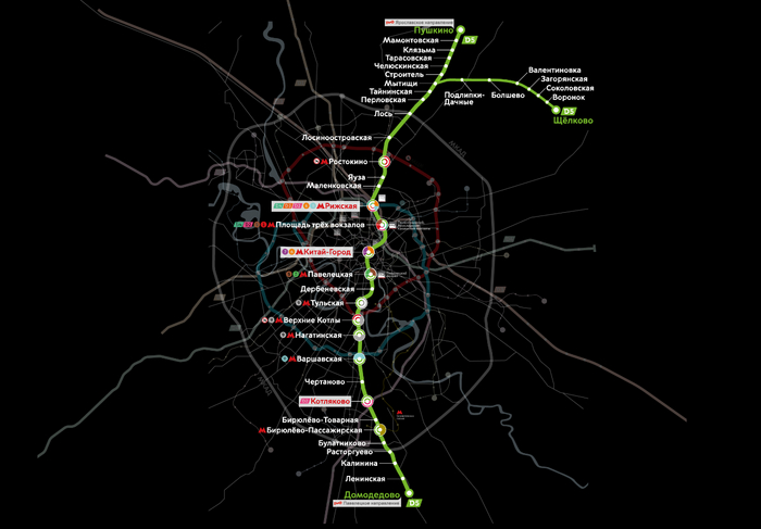2) Была проблема с прокладкой путей под него в центре Москвы. Недавно все-таки решили делать под него отдельный туннель длиной около 10 километров со станциями под Павелецким вокзалом, Китай-городом, площадью Трех вокзалов и Рижским вокзалом. Таким образом он свяжет сразу 5 вокзалов.