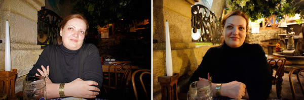 слева "авто" со вспышкой, справа более длинная выдержка + вспышка.