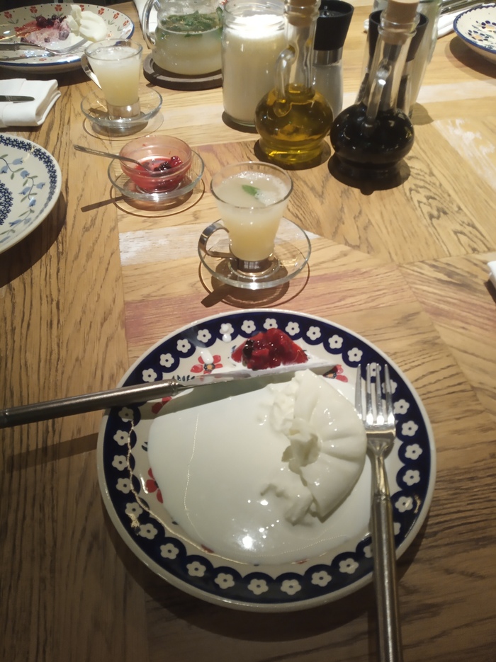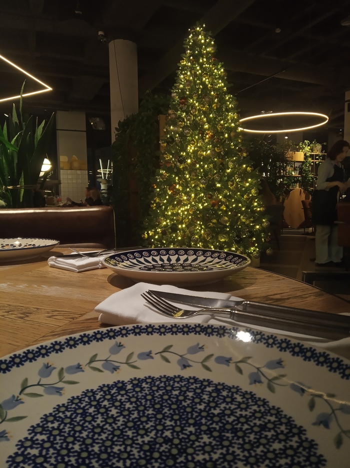 Сначала меня водили есть буррату с ягодным соусом, пить белое сухое (которое мне сейчас, строго говоря, сильно нельзя из-за таблеток, но вчера я решила, что чуть-чуть можно), смотреть золотистую новогоднюю ёлку и резные оконца домиков под звёздным небом.