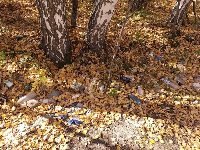 Два года назад ходила за грибами близ родного поселка в Лен. области, увидела внезапную свалку возле дороги, а в лесу на каждом шагу мелкий мусор (бутылки, фантики, упаковки от чипс и тд)