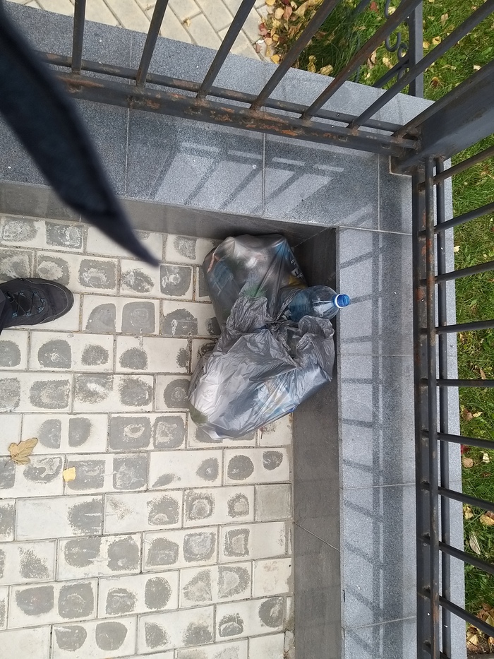 Окончательно эту историю сделала бабушка из стоящего рядом дома. Когда я проходил мимо, с пакетами, услышал стук в окно. Поднял голову, а там: бабушка, в окне лоджии третьего этажа, махает мне руками и одновременно показывает пальцы вверх. Видимо наблюдала всё это время за уборкой. И так радостно она это делала, что прям зарядила позитивом на оставшийся день.