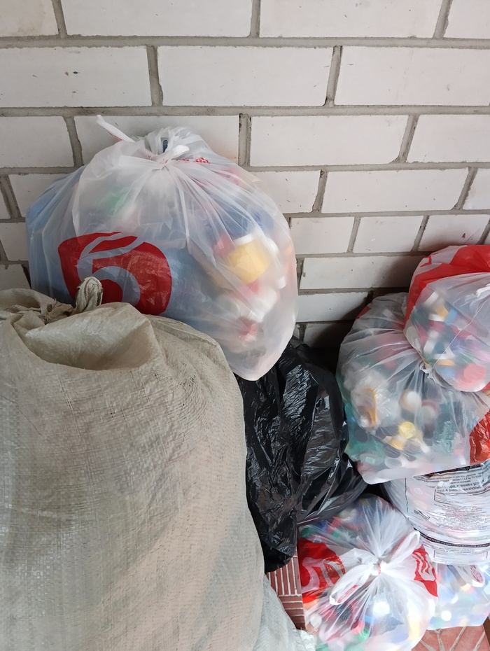 Собрал 2 мешка. Как обычно самое сложно донести до контейнеров.