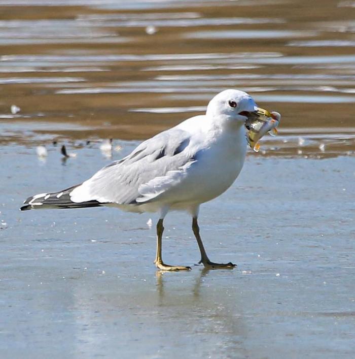 Озёрные и сизые чайки в Красной книге тоже имеют 2-ю категорию. В брачном оперении озёрная чайка выделяется тёмно-коричневой головой и тёмно-бордовым клювом.Сизая чайка немного больше озёрной. У взрослых птиц белое оперение с серовато-сизыми перьями на крыльях, а клюв и ноги – зеленовато-жёлтые.
