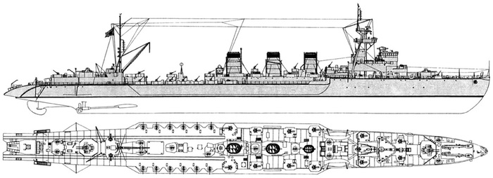 В конце концов получился корабль стандартного водоизмещения 2 650 тонн, длиной 127,3 м, наибольшей ширины 12,2 м, осадкой 3 м.