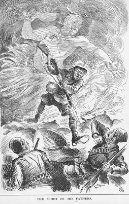 Агитационный рисунок из новозеландского журнала, под названием "Дух отцов".