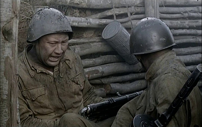 И по минному полю они в атаку ходили и с винтовкой против танков, не забывая расстреливать друг друга, взяв пример с НКВД. Да-да, штрафнички то и дело грозяться убить в случае чего, любого из батальона. Вор самолично расстрелял трёх провинившихся, понравилось и дело пошло на лад. Один мудак, которому сослуживцы недавали спать пока ебали баб, выпустил по ним короткую очередь, но никого не убил. Твердохлебов тоже начал медленно сходить с ума, кстати у него единственное ППШ в штрафбате, других нет. Постепенно он звереет и даже остервенело орёт на зэков, если те сомневаются в его приказах. Всё это сопровождается грустной мелодией, они - штрафники, мученики. Весь этот отмороженный штрафбат колесит по разным городкам и деревушкам, так и напрашиваясь на очередной расстрел. Постоянно угрожая друг друга страшными расправами, отмороженный штрафной батальон выносит казённый продвольственный склад, например. Авторы, да и сам Твердлохлебов нам как бы намекают: