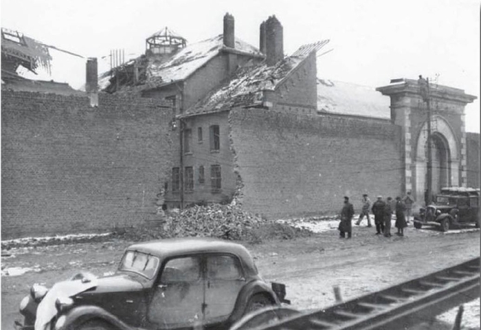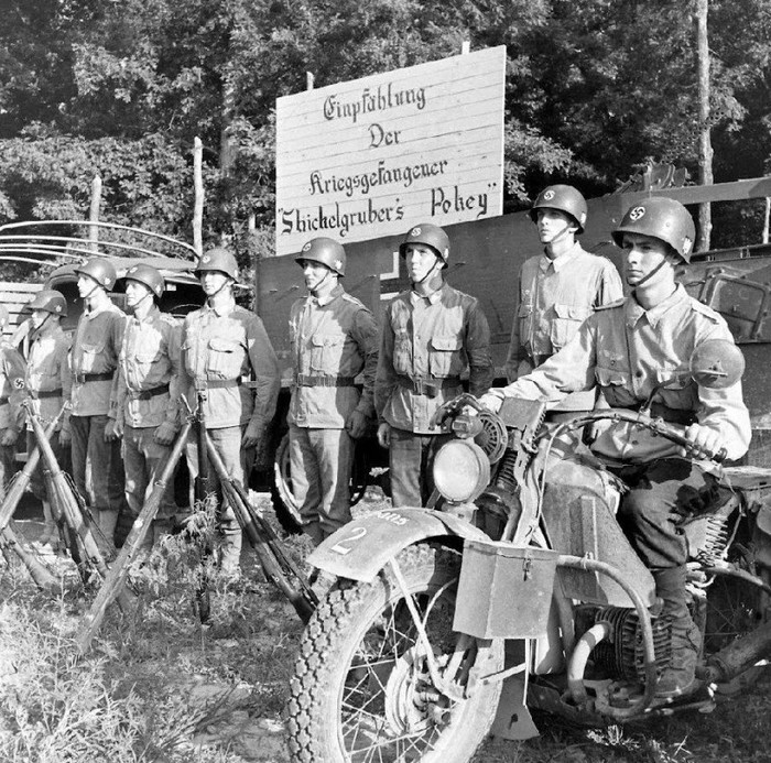 Табличку прибивают на улице Фюртер Штрассе (Führter Straße) в Нюрнберге — в 500 метрах от Дворца юстиции перед началом международного судебного процесса над бывшими руководителями Германии. На форме стоящего в центре виден шеврон 1-й пехотной дивизии армии США (1st Infantry Division).