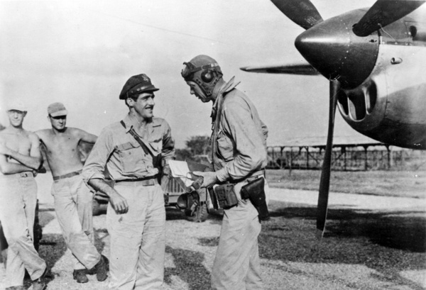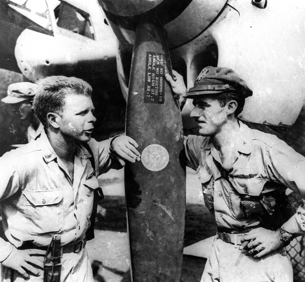 Рейнхард Хардеген (справа) и фотограф от "Propagandakompanie" Рудольф Майсингер после возвращения U–123 из похода к побережью США, 1942 год