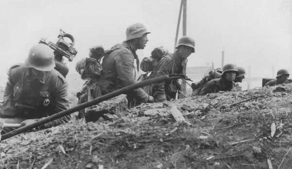 Солдаты вермахта слушают распоряжения офицера перед предстоящей атакой. июнь-июль 1941