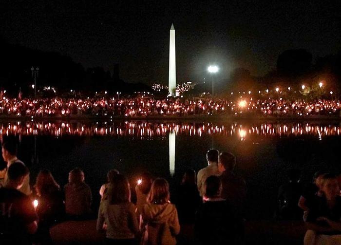 Тысячи людей принимают участие в ночном бдении в Вашингтоне, округ Колумбия.