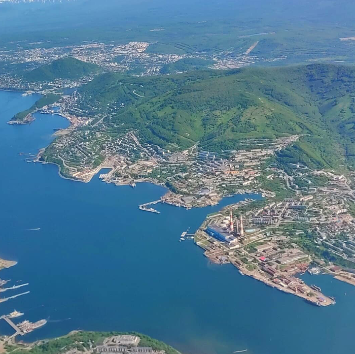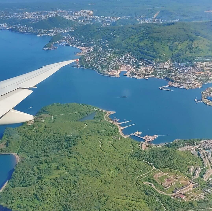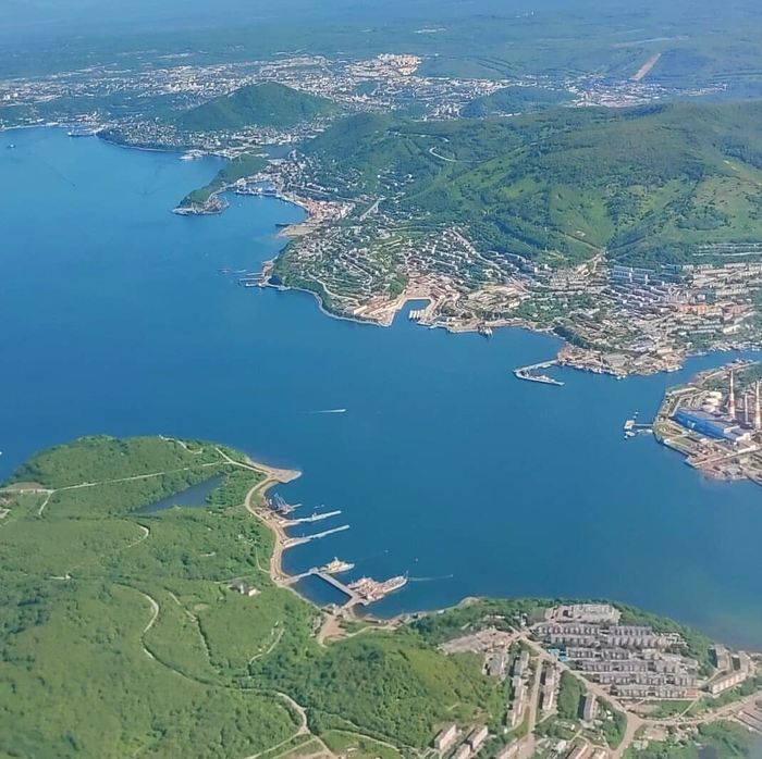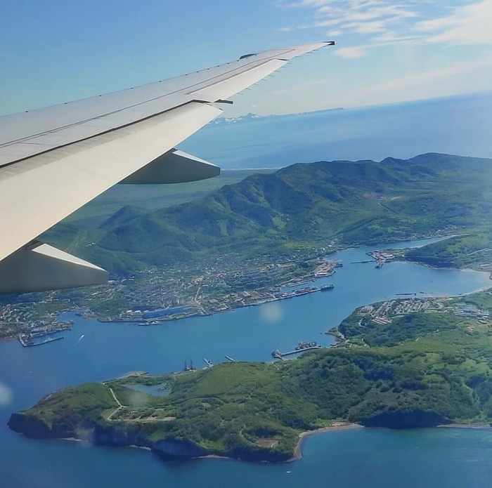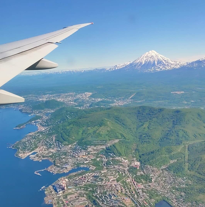 Такие виды может увидеть каждый, сидя в самолёте, который идёт на посадку в аэропорту Елизово (г. Петропавловск-Камчатский)