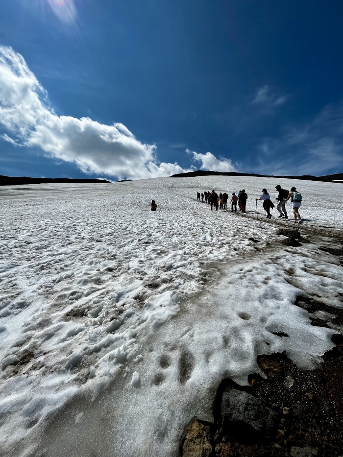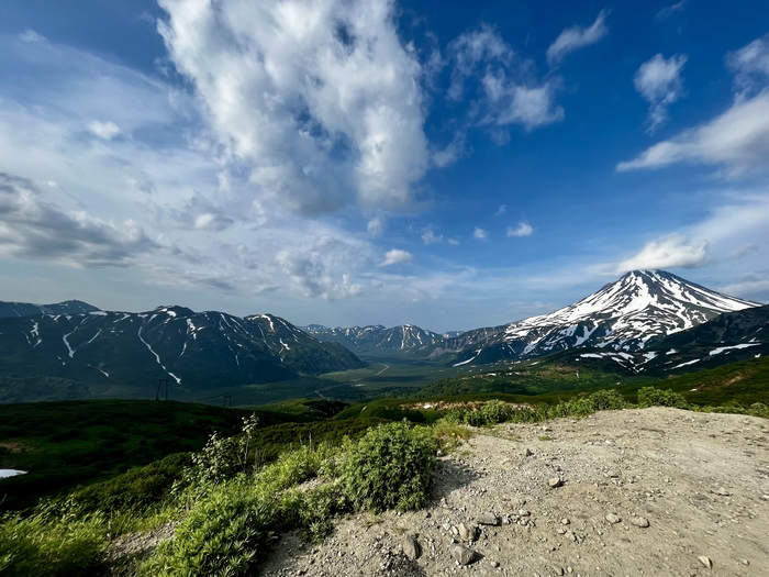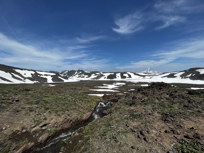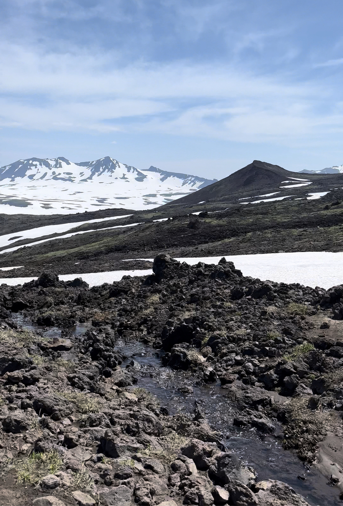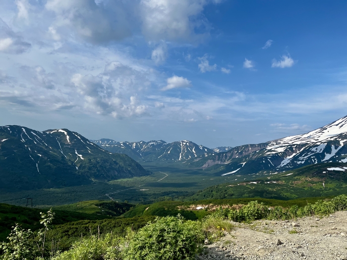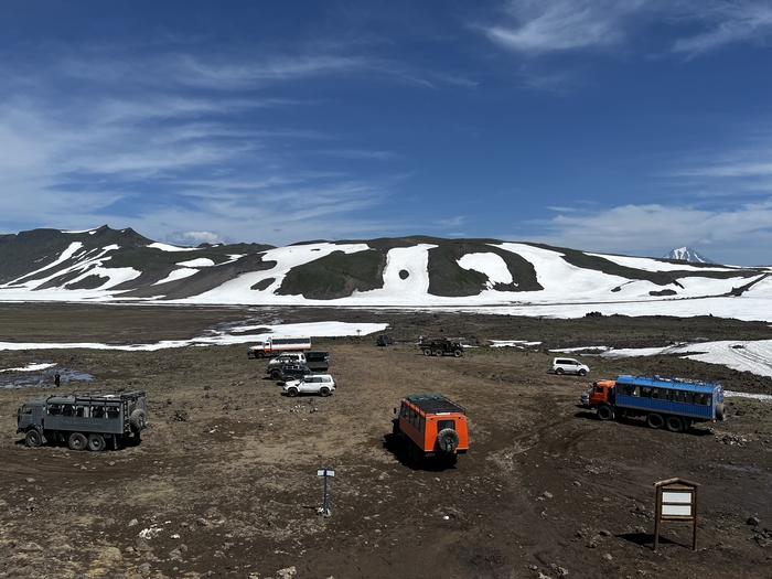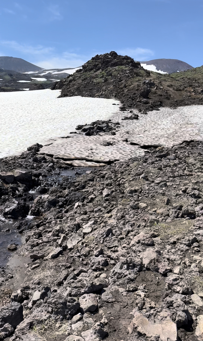 Далее по пути были моменты, когда ехали по снегу, и когда он был вокруг - в июле, едешь такой - и метр снега рядом 🙈 Камчатка…