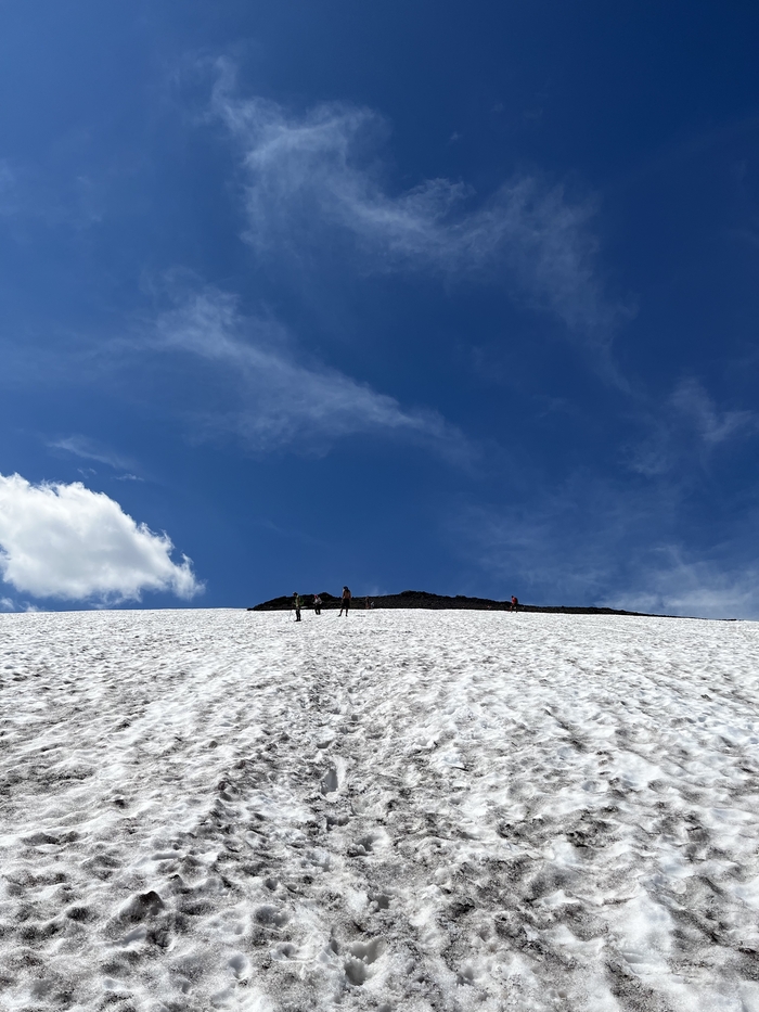 Снег на Камчатке в конце лета - обычное явление. Высота снежника порядка 4 метров.