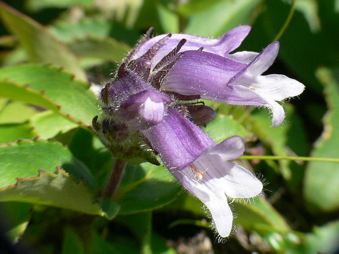 бледнолиловый, с белыми крапинками в зеве, 2-3 см длиной. Обитает по долинам водотоков, на осыпях, скалах.