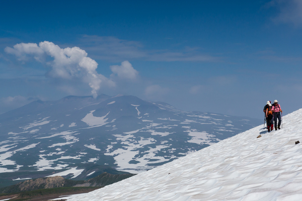 Вид на вулкан Мутновский, куда мы ходили в предыдущий день.