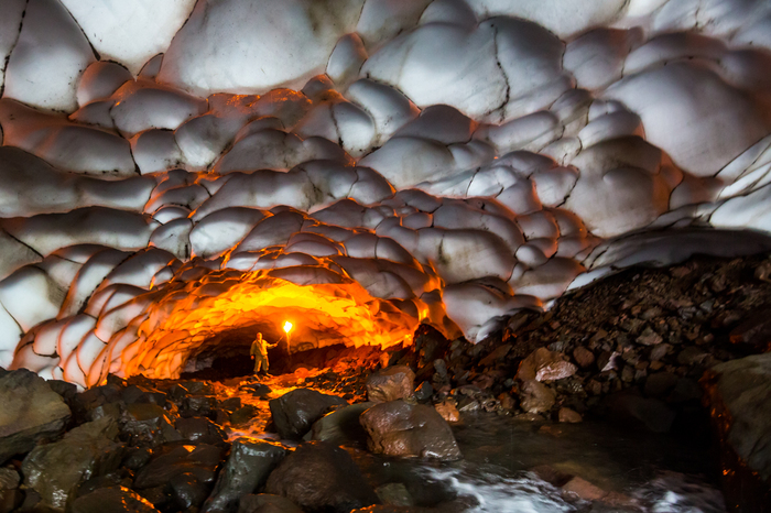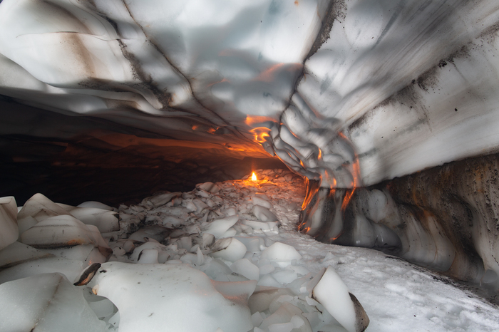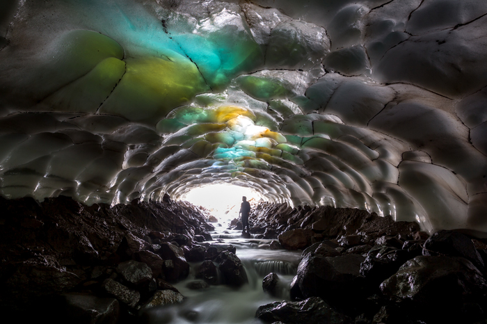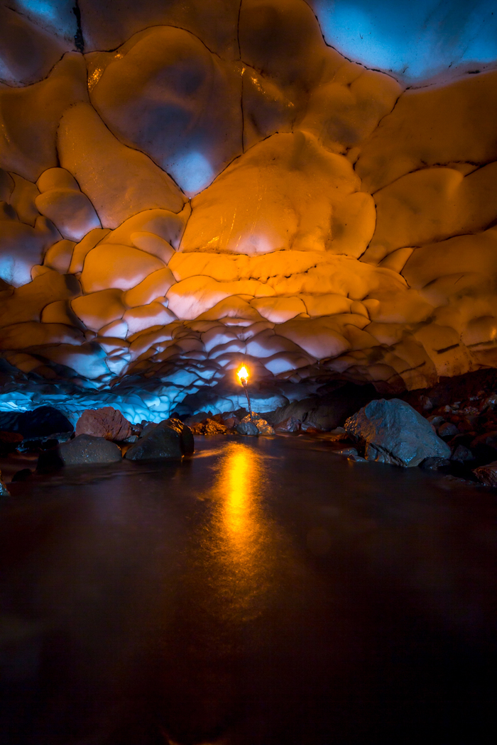 На обратной дороге заехали в пещеры, где текла лава, погуляли по ледникам. Везде ПЕРВОЗДАННАЯ природа. Ну и под вечер ещё скупались в сероводородных ваннах. Само собой, никак не обустроенных.