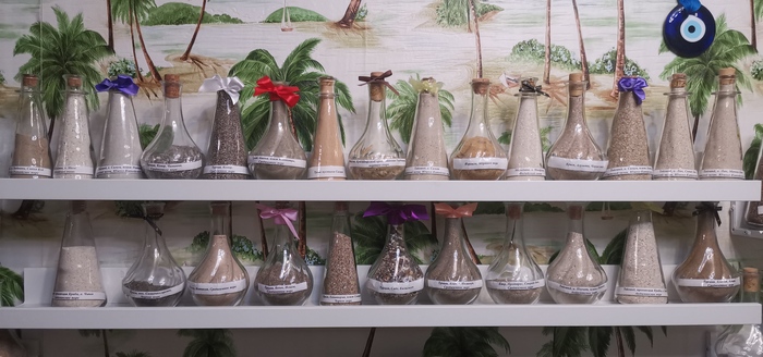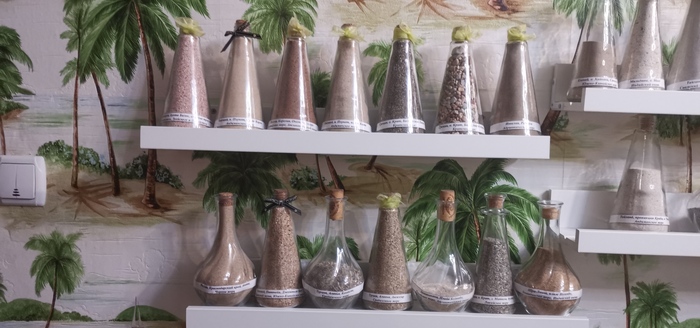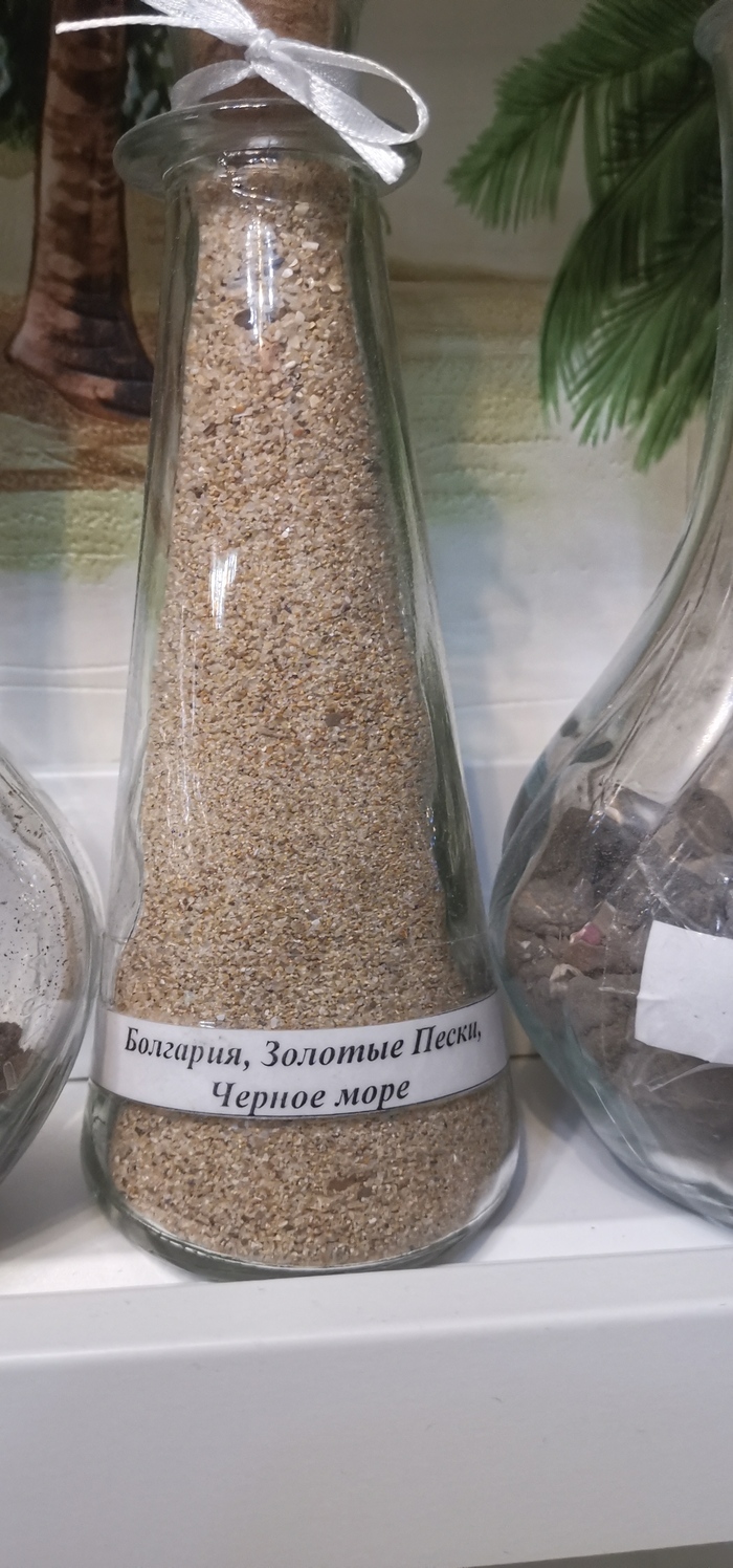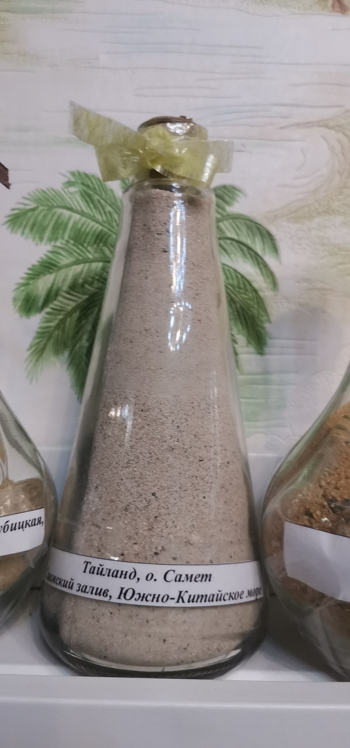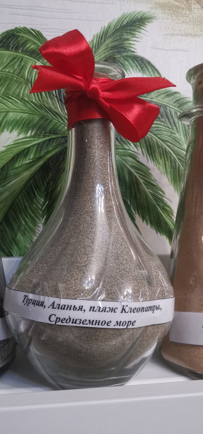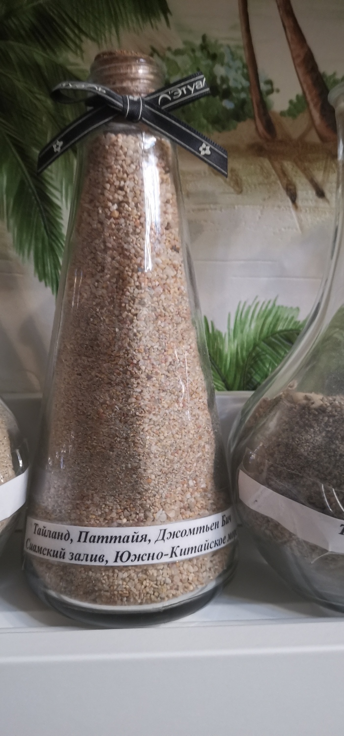 Хотел поделиться... Есть у меня хобби. Привожу из поездок песок с тех пляжей, где я был/купался и насыпаю в стеклянную ёмкость слоями. Получается примерно так:
