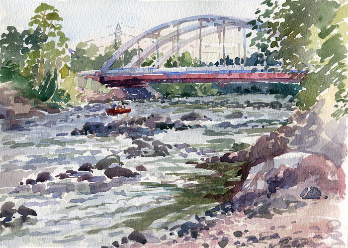 Думал уже тропу проложил при вываживании, но видимо там густо. Вуокса завораживает своим пейзажем, единственное мы приехали в логово мошек и комаров, но заранее позаботились об этом, и они стали нашими соседями в радиусе 3-х метров. На закидушку (резинку) – в качестве приманки насадил плотвичку, которую поймали, но хищник так и не клюнул, видимо спал.