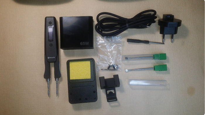 Завершаем текущую подборку еще одним продуктом от FNIRSI. Модель HS-02 представляет собой усовершенствованную версию HS-01, в которой учтены все возможные аспекты. Во-первых, мощность паяльника увеличилась с 60 Вт до 100 Вт, в связи с чем в комплект добавлен фирменный блок питания на 100 Вт. Во-вторых, теперь имеется удобный футляр для транспортировки, которого не хватало у HS-01. В-третьих, новый цветной OLED-дисплей стал более информативным. В-четвертых, паяльник теперь поддерживает не только протокол PD, но и QC. В-пятых, температурные диапазоны немного изменены и теперь составляют от 100 до 450 градусов, а также добавлены предустановленные пресеты для быстрого выбора температуры. Наконец, паяльник автоматически отключается при размещении на своей станции. Стоит отметить, что вес устройства увеличился с 53 до 61 грамма, а из коробки паяльник настроен на мощность 65 Вт, тогда как все 100 Вт доступны через меню настроек.