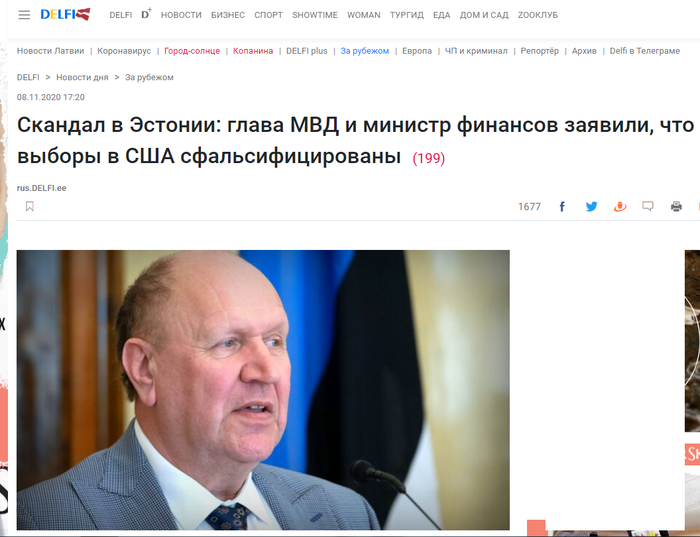 ”Вчера вечером, посмотрев на всю эту клевету и ложь, которую продуцируют эстонские СМИ, я решил подать в отставку. Я сыт по горло. Я не сделал ничего такого, что подорвало бы обороноспособность Эстонии. Я не говорил ничего такого, о чем не говорят американские СМИ. Свободные американские СМИ”, — сказал Хельме. Он отметил, что Джо Байден не является президентом США, он является лишь избранным президентом и его полномочия будут подтверждены только после окончания всех судебных разбирательств.